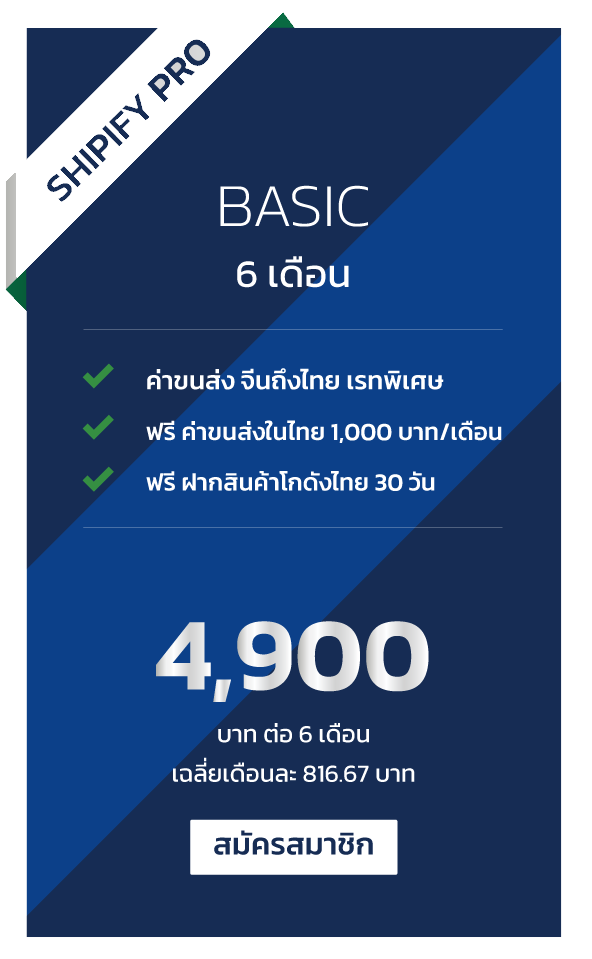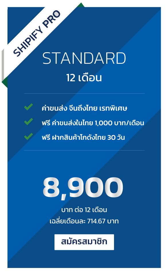 • คุณจะได้รับการเลื่อนระดับจากเดิมไป Shipify Pro ทันที โดยราคาขนส่งจะเป็นไปตาม Diamond Level