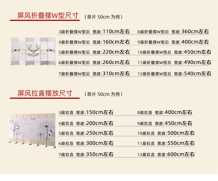 1.8米高*0.5米宽(单面图)4扇颜色分类