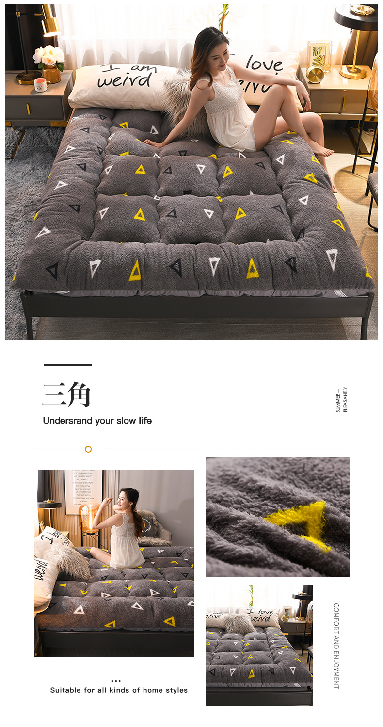 一面羊羔绒绒(冬天使用)一面磨毛面料(四季适用),羽丝绒填充,蓬松保暖,柔软舒适。厚度蓬松状态下约10cm。